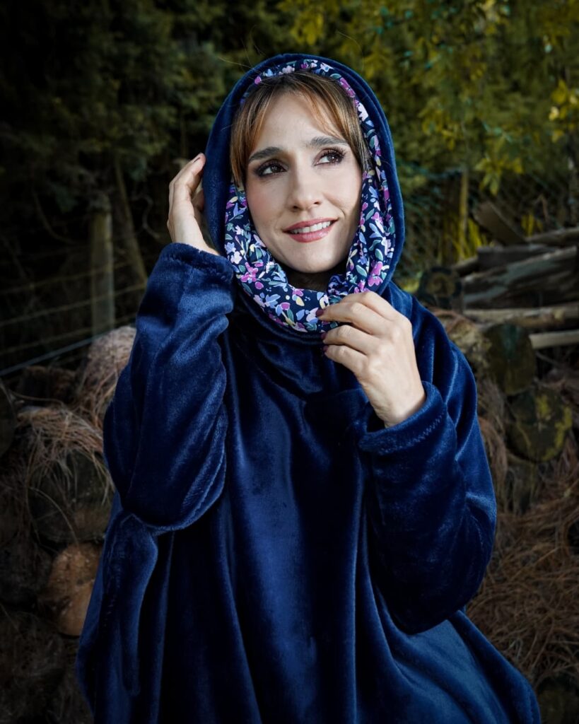 Ruabijas es un concepto que surge de unir dos elementos muy familiares para los colombianos: la ruana y la cobija. Chichila es la mente detrás de esta idea con la cual se creó una línea de abrigos suaves, envolventes y prácticos que buscan brindar sensación de hogar, pero con estilo. No solo es actriz y empresaria en el sector de la moda, ella misma es su modelo de marca.