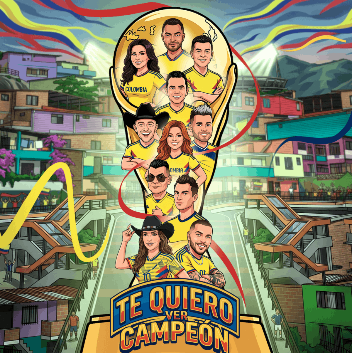 “Te Quiero Ver Campeón” es el título de la nueva canción forjada desde el corazón de once de los artistas más queridos de la música popular colombiana: Jessi Uribe, Pipe Bueno, Luis Alfonso, Jhon Alex Castaño, Alzate, Jhonny Rivera, Luisito Muñoz, Ciro Quiñonez, Arelys Henao, Francy y Paola Jara. Juntos, crearon lo que el país entero aspira a convertir en el himno no oficial de la Selección Colombia de cara a la Copa Mundial FIFA.